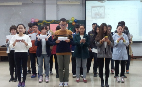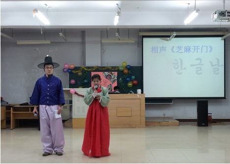 2014年10月14日晚,外国语学院朝鲜语系在西区一教504教室举行了“韩字节”联欢晚会。学院书记刘力老师、朝鲜语系的各位老师及全体朝鲜语系学生和部分留学生参加了本次晚会。